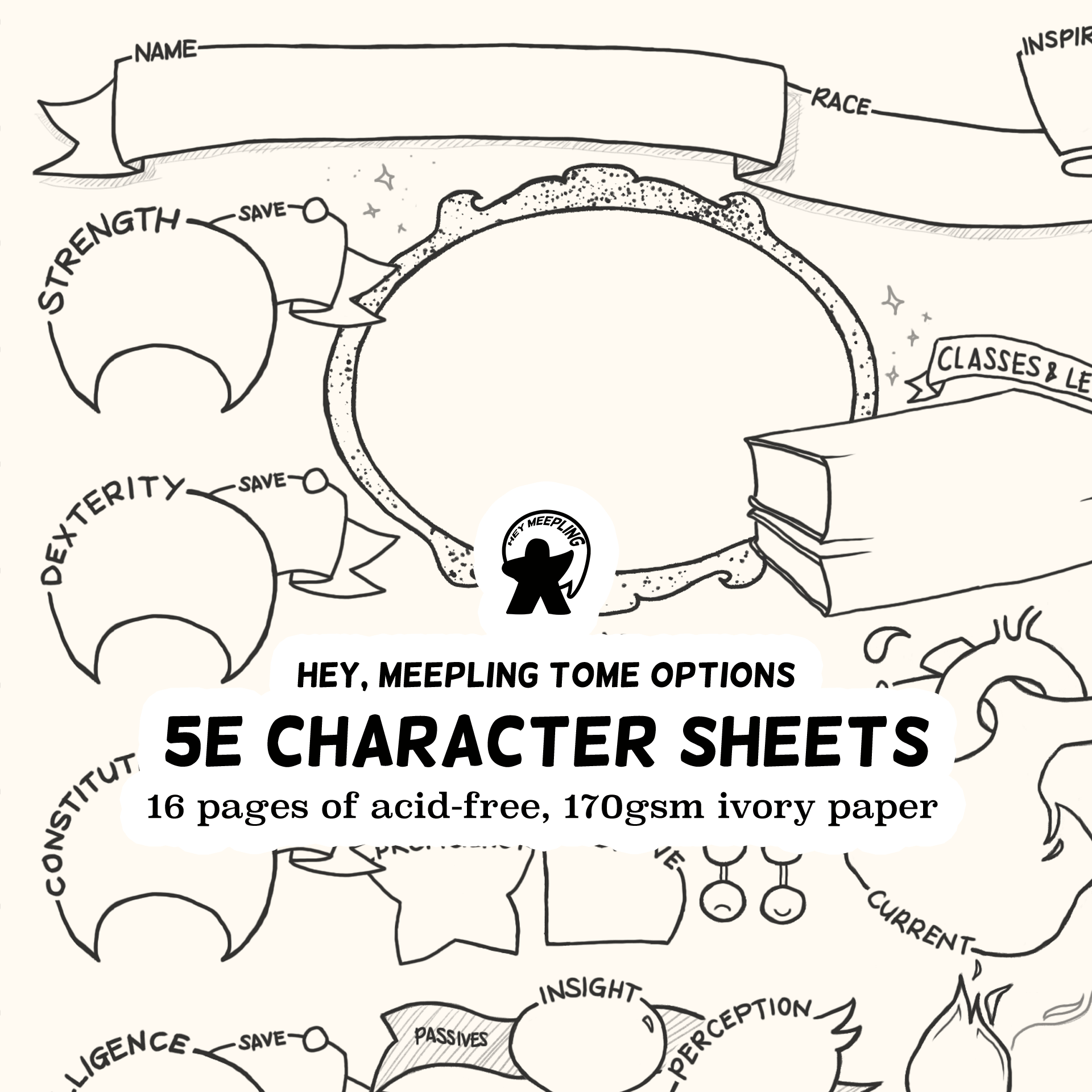 Each tome contains (by default) 80 pages, split into 16-page parts. You can change the content of each part, from plain sheets to character sheets! Check out the possible sheets you can select below: